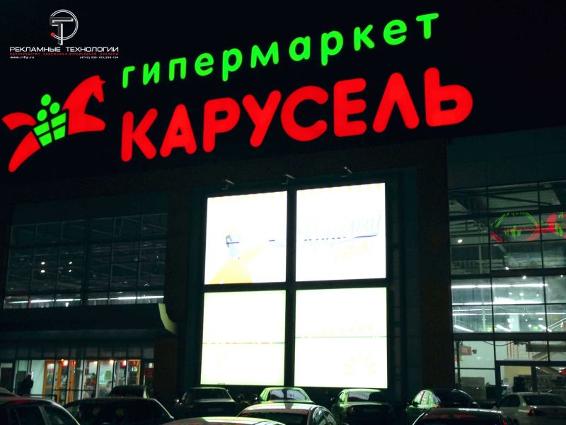 Гипермаркет КАРУСЕЛЬ - реконструкция вывески, обновление фасада, новая вывеска на стеле