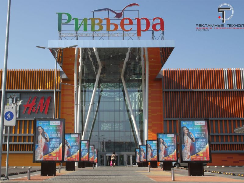 Скроллеры перед ТРЦ "Ривьера" (Изготовление наружной рекламы Липецк)
