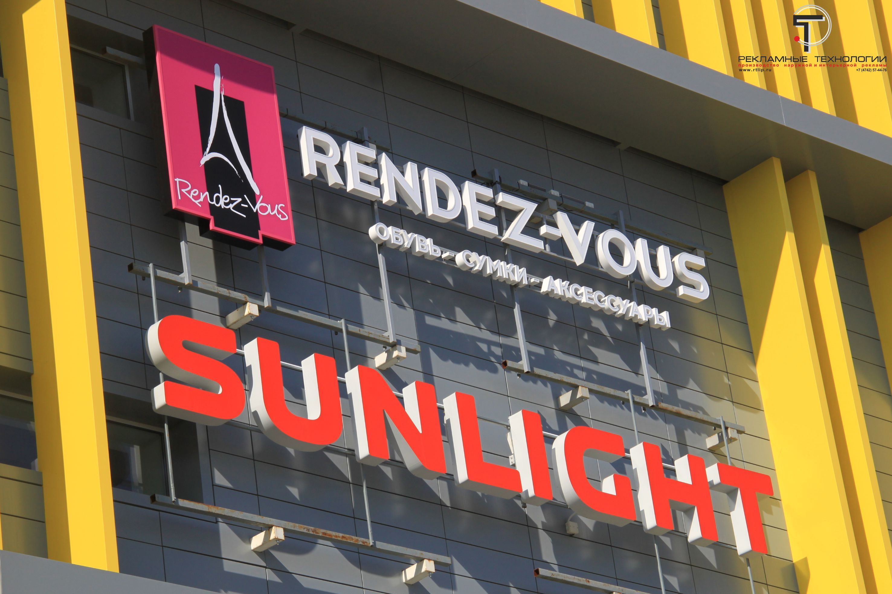 Новая вывеска компании SUNLIGHT смонтирована на фасада ТРЦ "Ривьера". Вывеска изготовлена по новым требованиям к наружной рекламе г. Липецка.