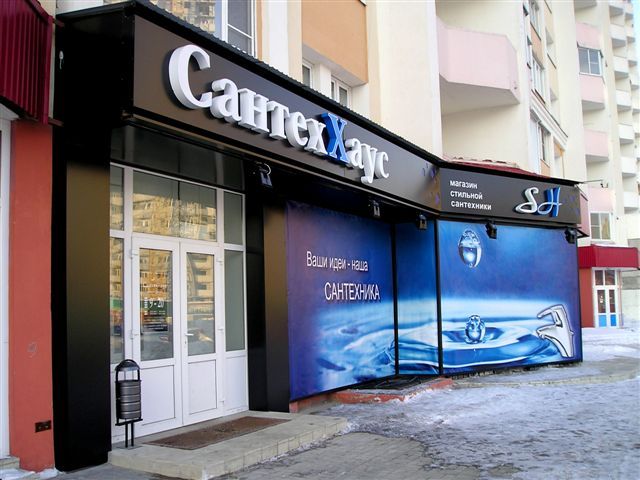 Новая наружная реклама в Липецке - магазин стильной сантехники «СантехХаус» открылся на ул. П. Смородина. Осуществлён монтаж фасадной вывески, которая представляет собой световой короб из алюминиевой композитной панели Dibond и световые буквы с подсветкой светодиодными модулями ELF SMD5 .