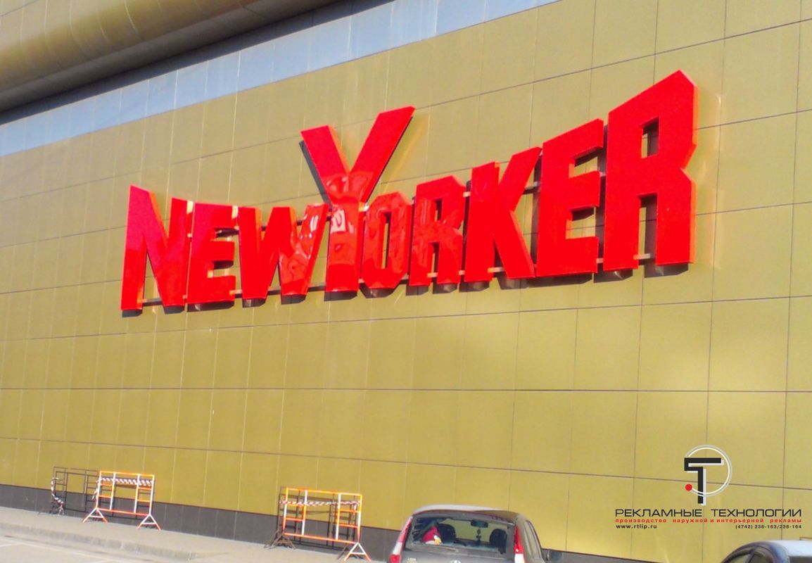 Новая наружная реклама в Липецке. (Наружная реклама Липецк.) В начале 2014 года успешно смонтирована новая вывеска магазина NewYorker. Немецкая сетевая марка разместила на фасаде ТРЦ "ЕВРОПА" световые буквы высотой 3,5м. Особенностью наружной рекламы явилось то, что световые буквы при такой высоте имеют световые борта из акрилового стекла. Данная наружная реклама в Липецке стала ещё одним украшением фасада торгового центра. (Наружная реклама Липецк январь, 2014 год)