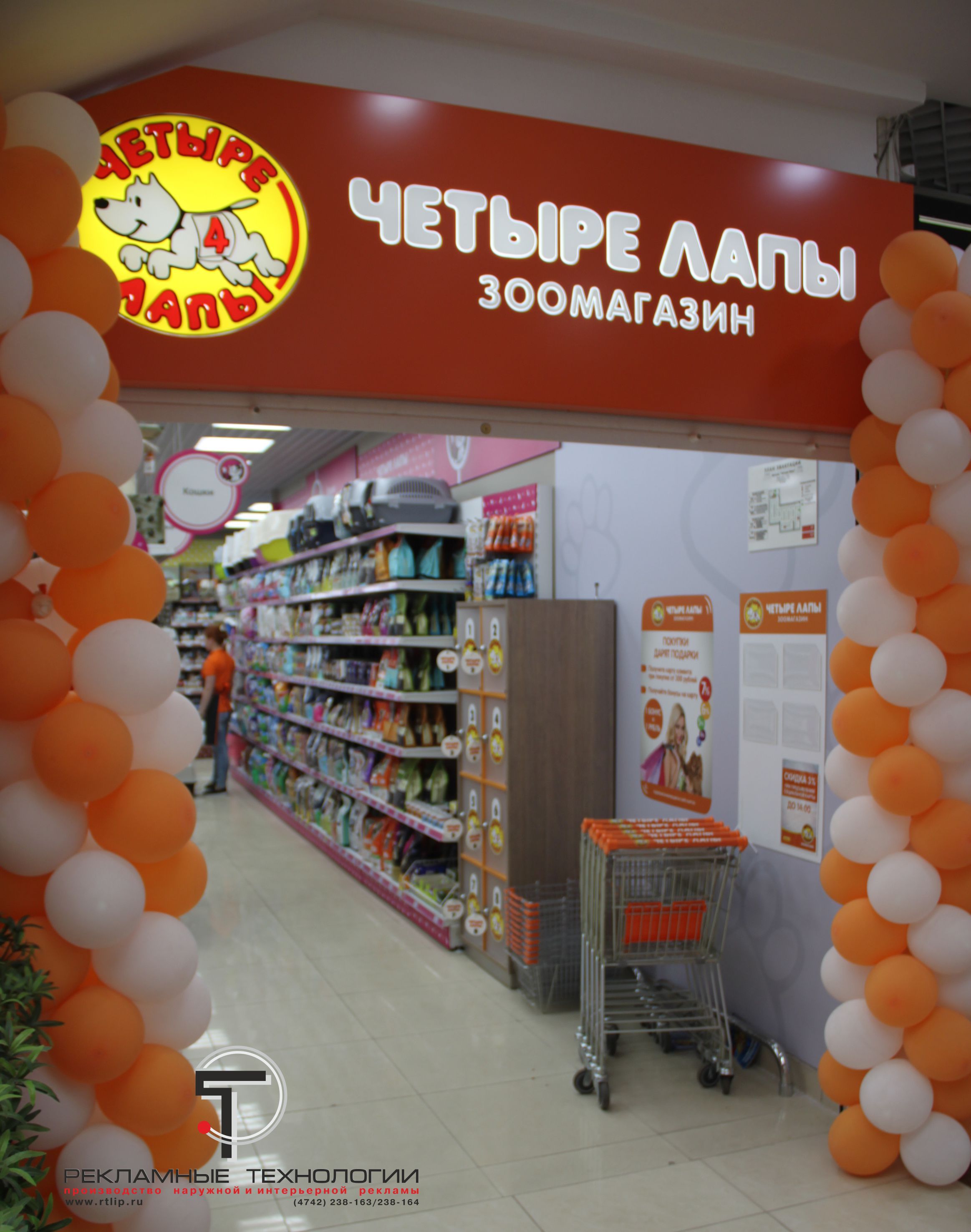 Сеть зоомагазинов "4 ЛАПЫ" открыла 2-ой магазин в Липецке и теперь в России представлено более 140 магазинов этой сети (изготовление вывесок и навигации в Липецке).