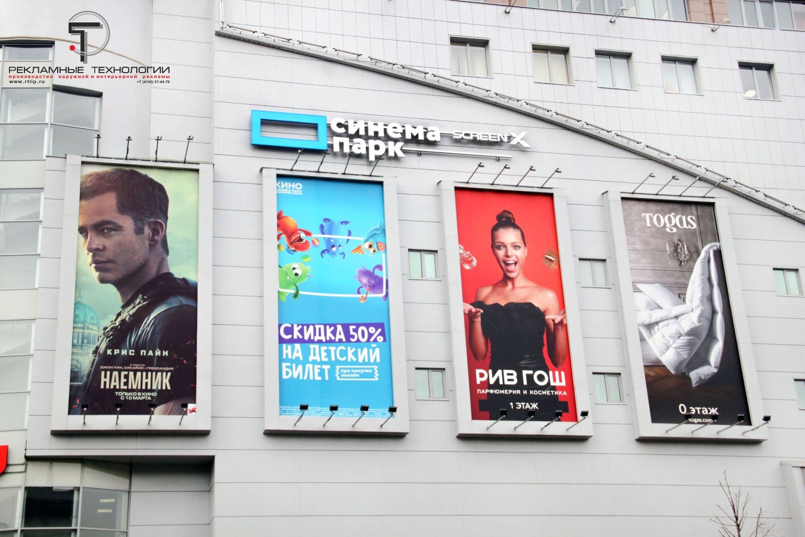 Фасад ТРЦ "Европейский" украсила новая вывеска сети кинотеатров "СИНЕМА ПАРК".