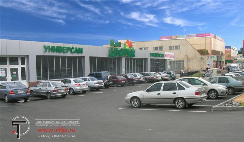 В густонаселённом районе Сокол г. Липецка открылся новый универсам «Наш дворик». Для удобства покупателей предоставлены богатый ассортимент товаров, низкие цены, удобная парковка. Оригинальный дизайн световой вывески стал новинкой для наружной рекламы в Липецке. Он привлекает в магазин новых покупателей за счёт отличной просматриваемости вывески, как с дороги, так и с тротуара.