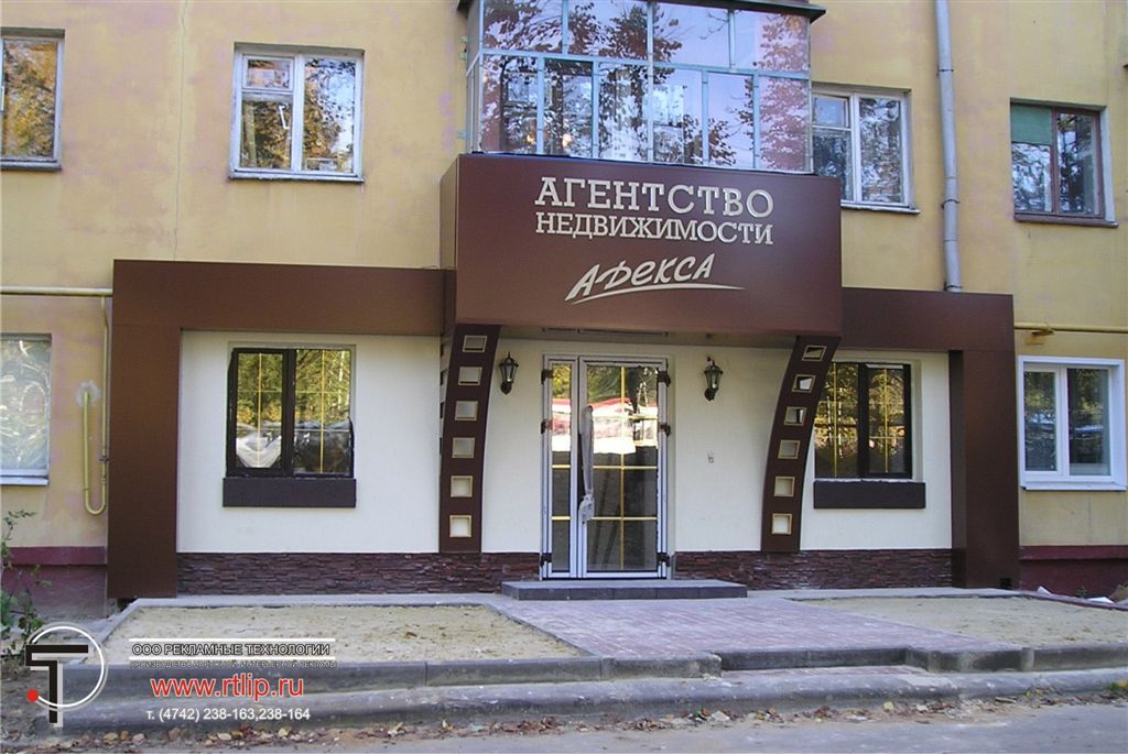 Закончено оформление фасада агентства недвижимости «Адекса» Световую вывеску архитектурно дополняют оригинальные колонны сложной формы. Центральный короб выполнен из алюминиевой композитной панели с инструктацией оргстеклом толщиной 20 мм. Для увеличения долговечности вывески установлены светодиодные модули ELF 5 SMD. Со временем светодиодная подсветка станет стандартом для наружной рекламы вывески в Липецке.