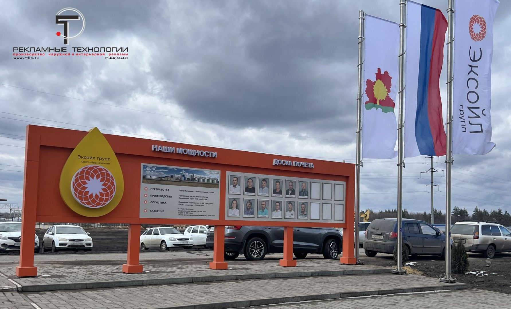 Компания ООО "Рекламные Технологии" по заявке от маслозавода ООО "Черноземье" изготовила и смонтировала информационный стенд "ДОСКА ПОЧЕТА" и флагштоки.