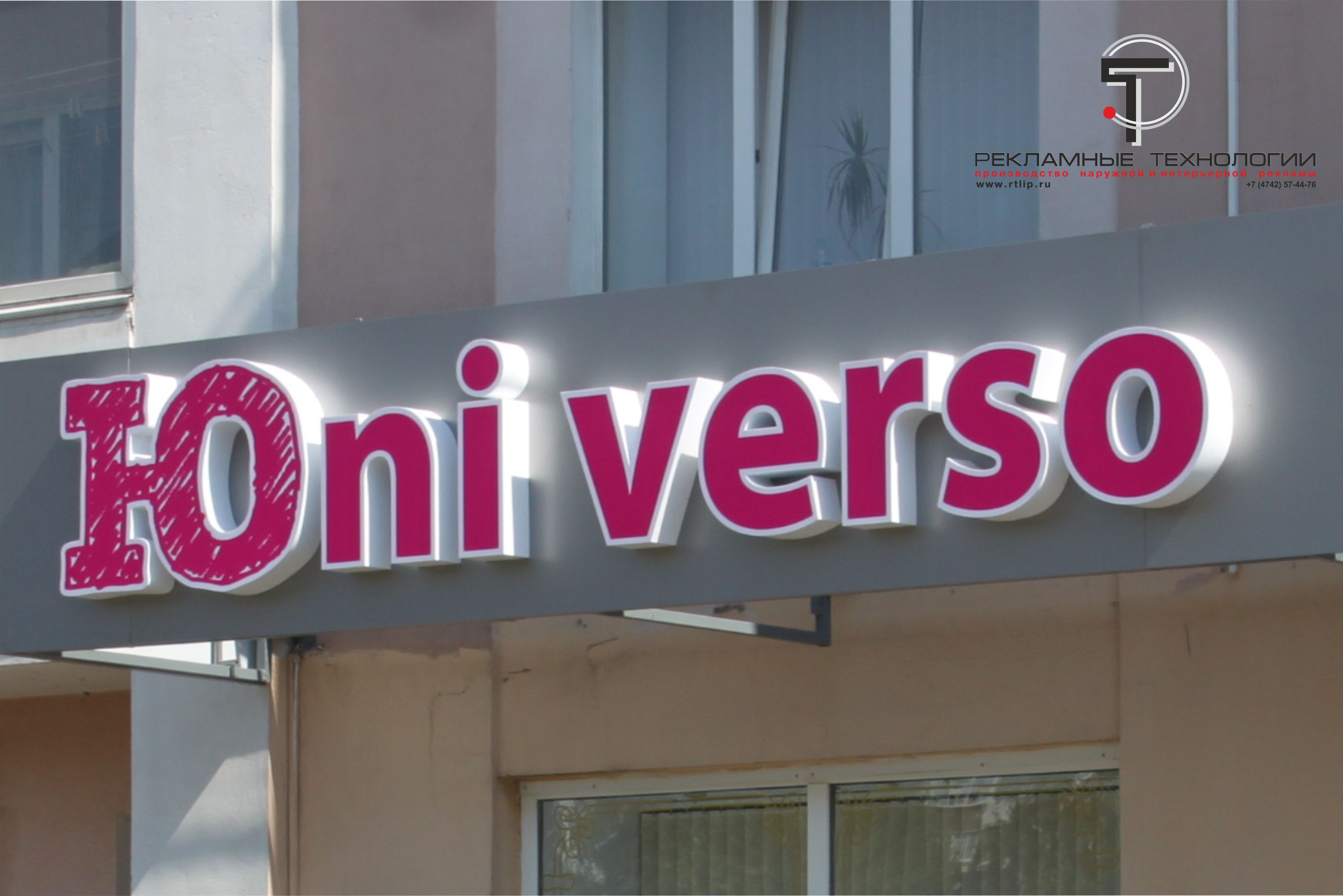 В Липецке осуществлен монтаж световой вывески: световые объёмные буквы на подложке (фризе) из алюминиевой композитной панели.