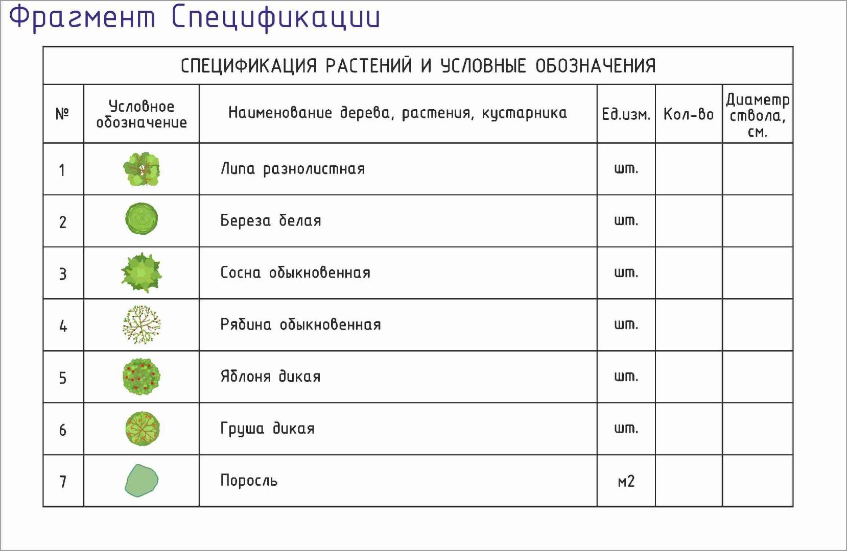 На плане отражают все зеленые насаждения, готовится спецификация и на основе плана принимаются решения о переносе деревьев, высадки новых деревьев или вырубке с последующей посадкой в другом месте.